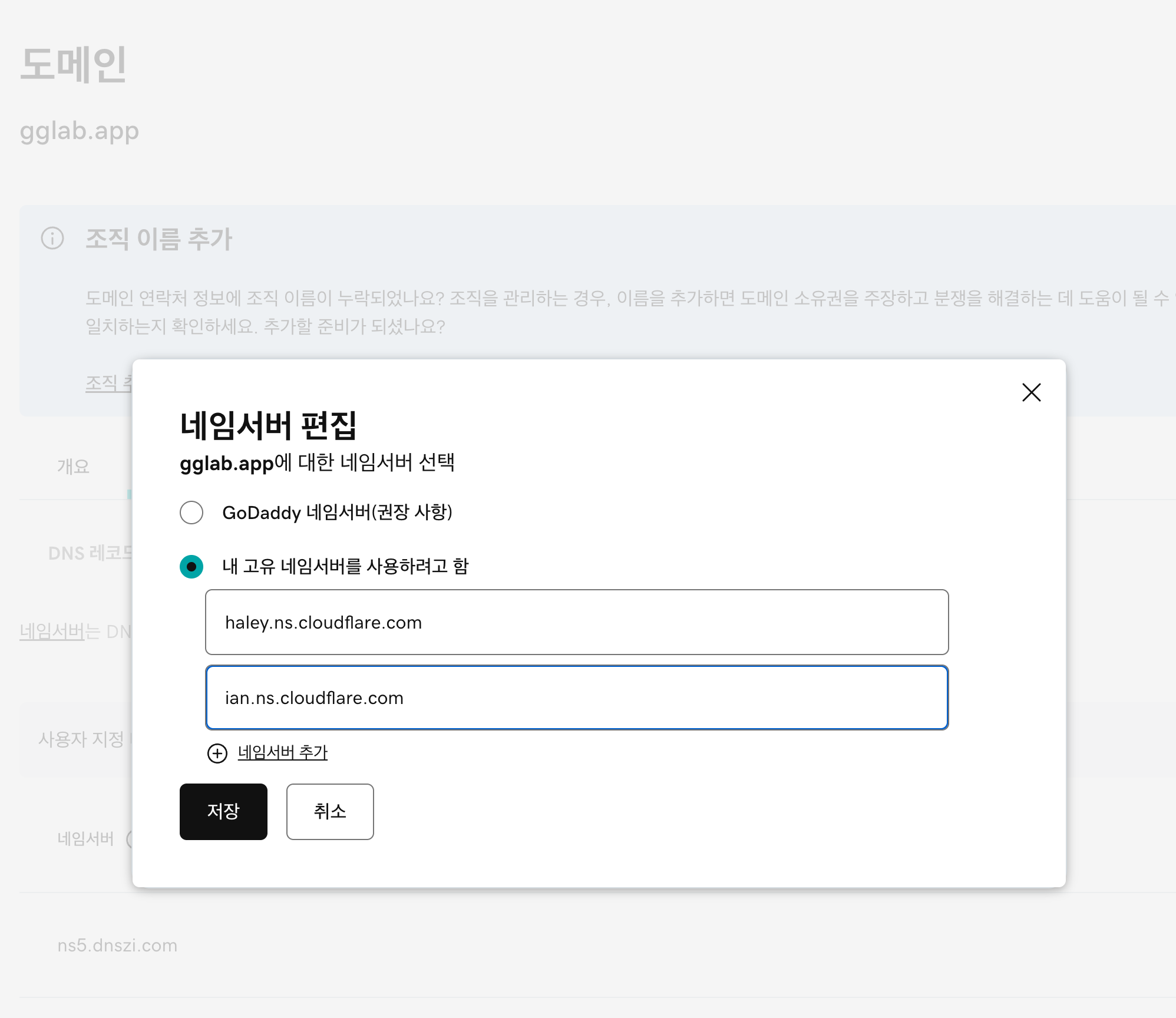 godaddy 에 접속해서 네임서버를 바꿨다.