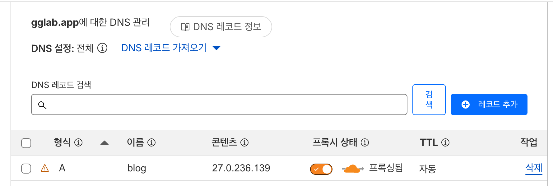1. Cloudflare 에 기존 DNS 업체 정보 모두 옮기기 (현재는 무료 DNSZI 를 쓰고 있다.) => 완료